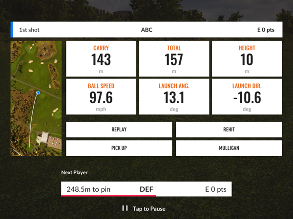 - Þegar leik er lokið á fyrstu holu birtist mynd frá næsta teig og leikurinn heldur áfram.